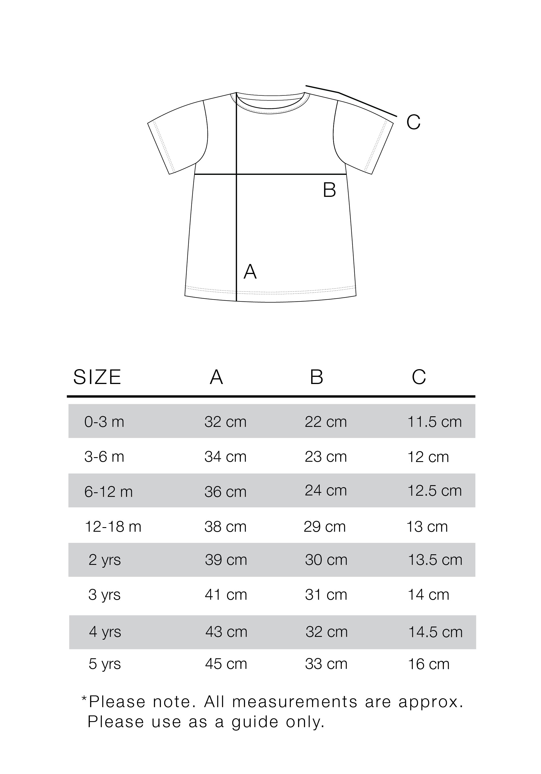 Please note: Our size guide is only approximate measurements. Please use this as a guide only.