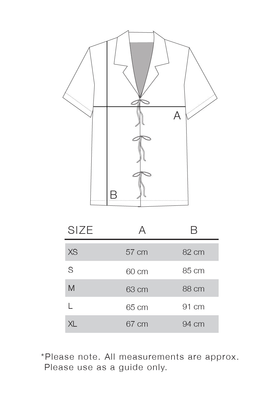 Please refer to the image at the end of the product image carousel for further details on measurements. Our size guide is only approximate measurements, taken on a flat surface and are of the front of the garment only. Please use this as a guide.