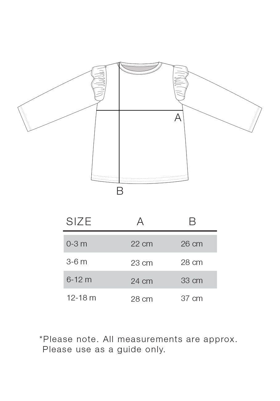 A super light layer, made from the softest jersey, our new Frill Shoulder Long Sleeve Top is a great choice coming into the colder months. Cute frill details, along with a new in-house designed print, this top is so cute paired with our new range and matching leggings.