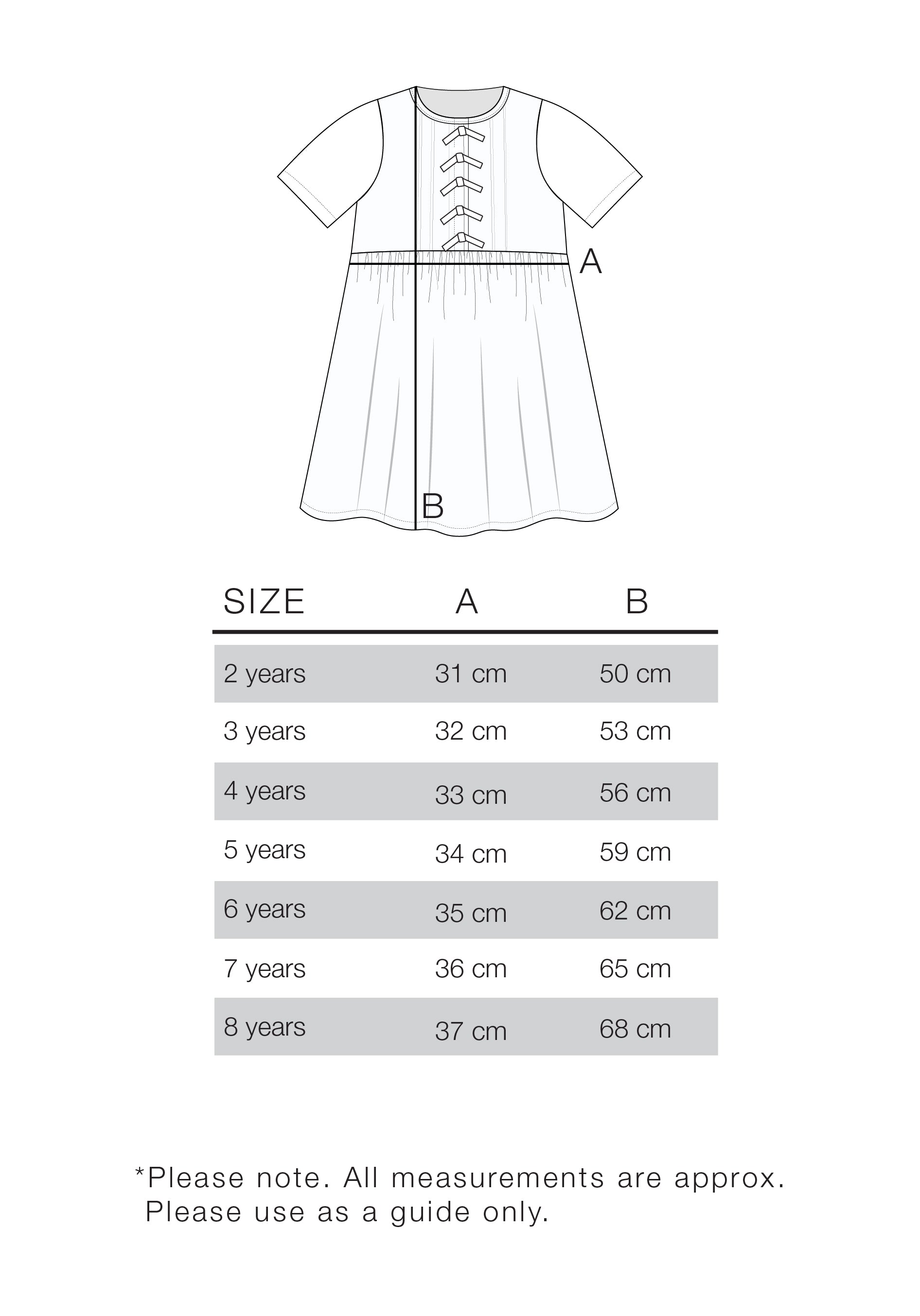 Our size guide is only approximate measurements. Please use this as a guide only.