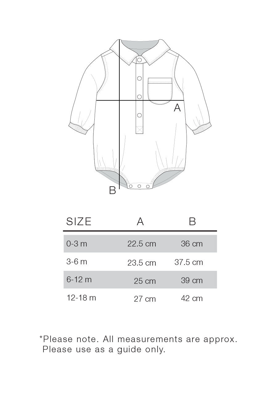 Our woven bodysuits are super light and breathable. After many requests for a more gender neutral suit, we're so happy to bring you our Long Sleeve Collared Bodysuit.This bodysuit is true to size in a non stretch woven cotton that is a great layer for the winter months.