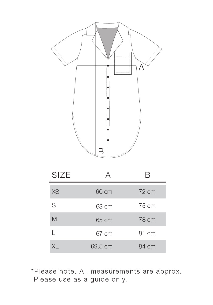 Please refer to the image at the end of the product image carousel for further details on measurements. Our size guide is only approximate measurements, taken on a flat surface and are of the front of the garment only. Please use this as a guide.