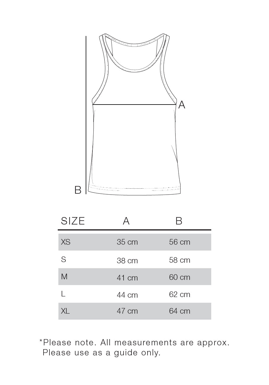 Please refer to the image at the end of the product image carousel for further details on measurements. Our size guide is only approximate measurements, taken on a flat surface and are of the front of the garment only. Please use this as a guide.