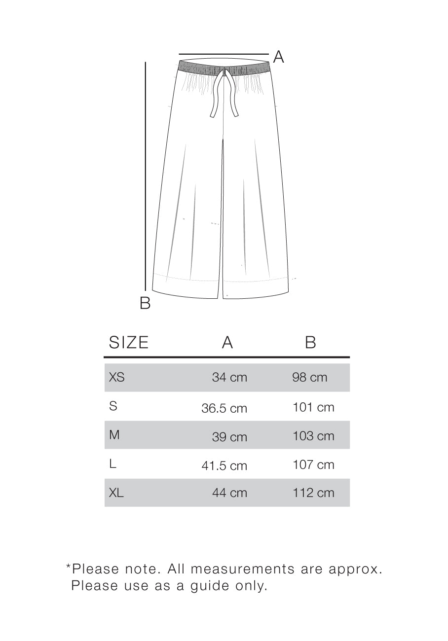 Relax in comfort this summer with our new Anais Pants. Featuring the same fit as our Pearl Shorts, they have a simple elasticated waist and easy fit through the legs, this piece is best showcased by tucking a shirt or t-shirt into the front.