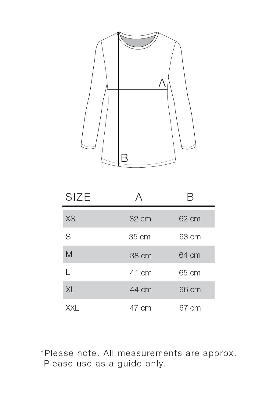 Please note: Our size guide is only approximate measurements. Please use this as a guide only.